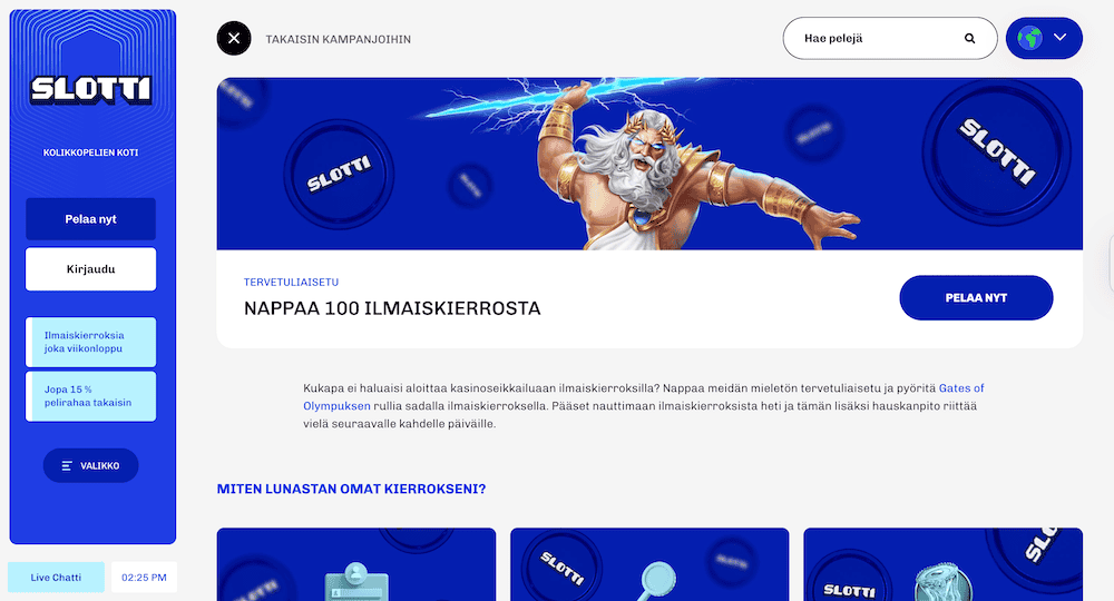 Slotti -on suhteellisen tuore, vuonna 2023 ovensa avannut nettikasino. Kyseessä on pikakasino, joka tarjoaa kasinoharrastajille sekä kasinoa, että myös livekasinoa.